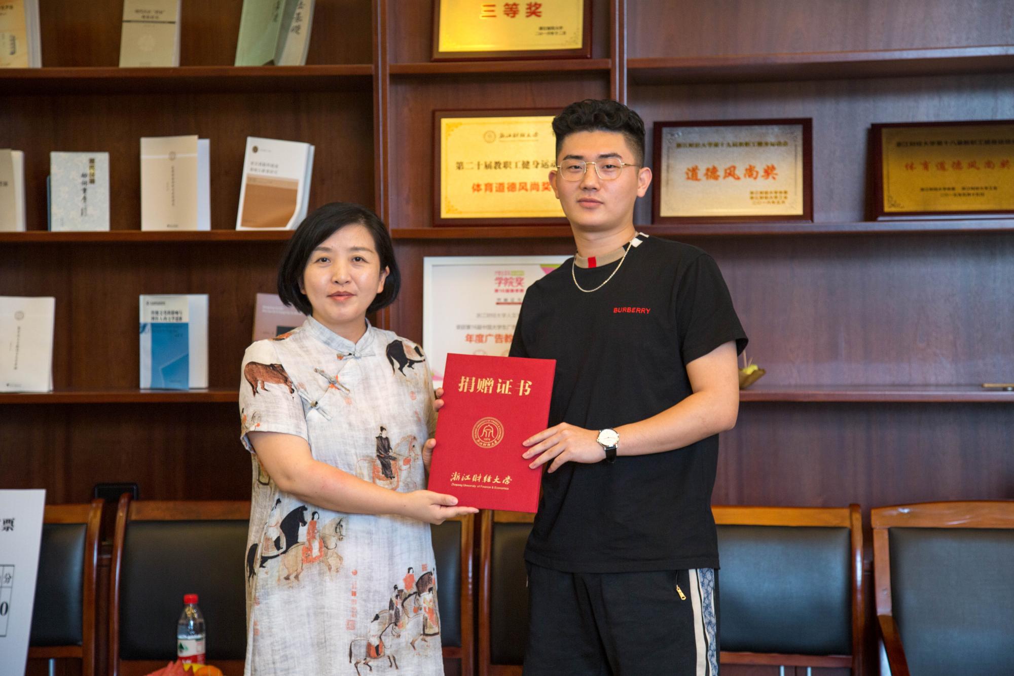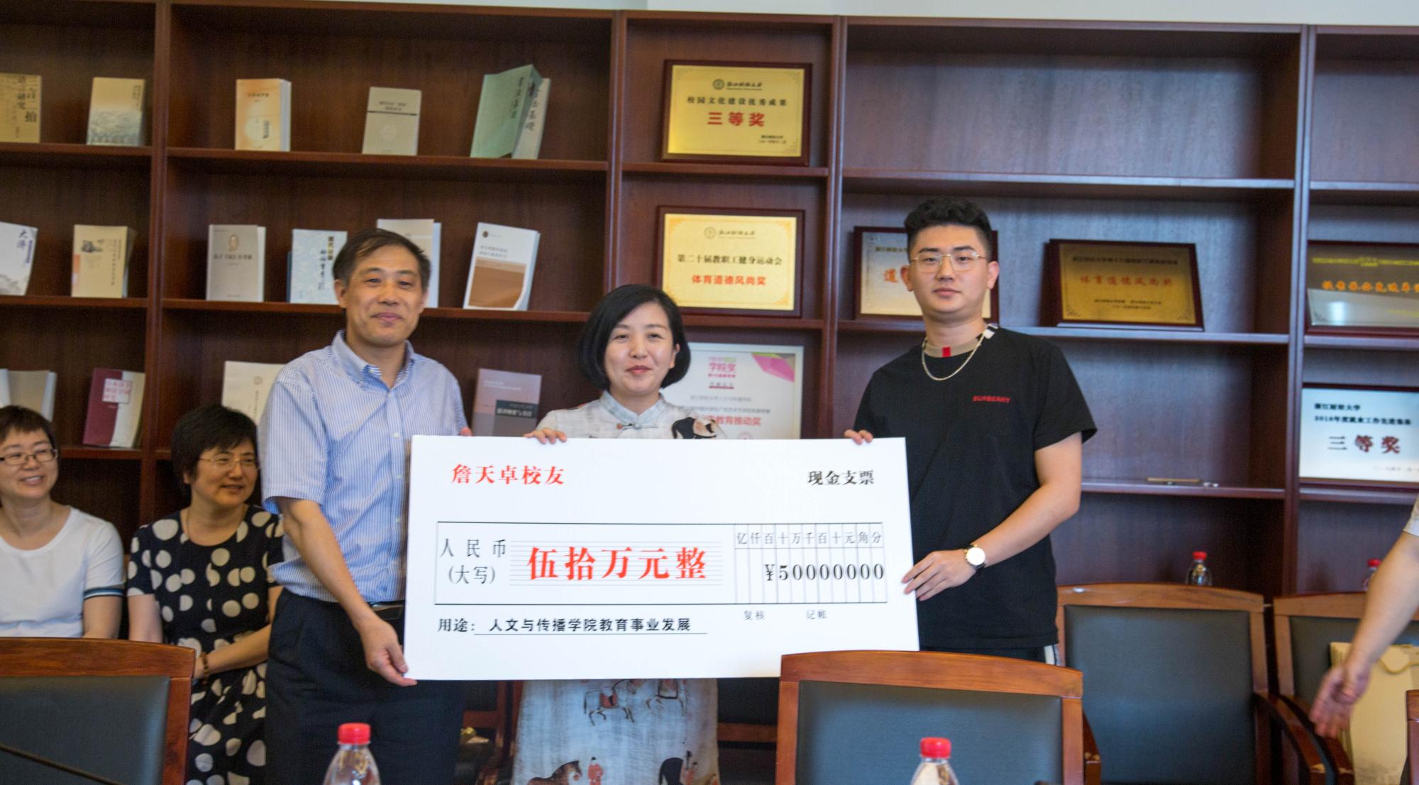 接受了校友捐赠,高燕书记向詹天卓颁发了爱游戏