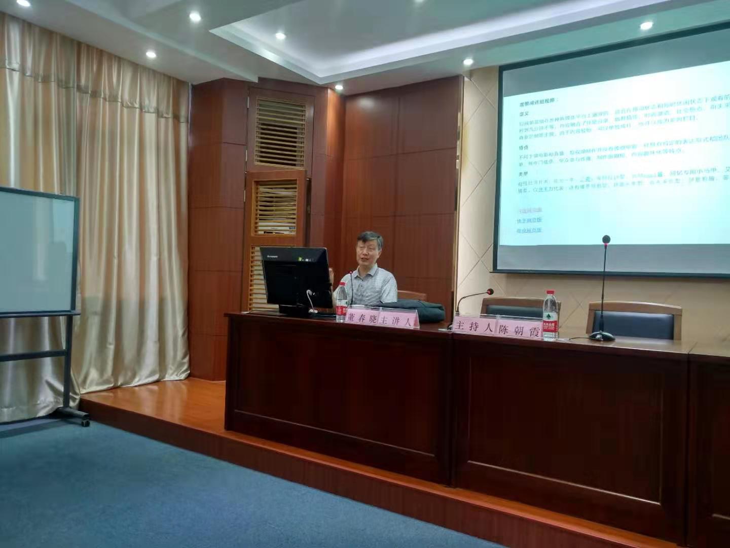 退休教师刘友林教授、董春晓副教授,两位老师分别做了题为“ 创新思维漫谈”、“短视频兴起的社会、文化和美学透视”讲座。讲座由陈朝霞副教授主持,爱游戏