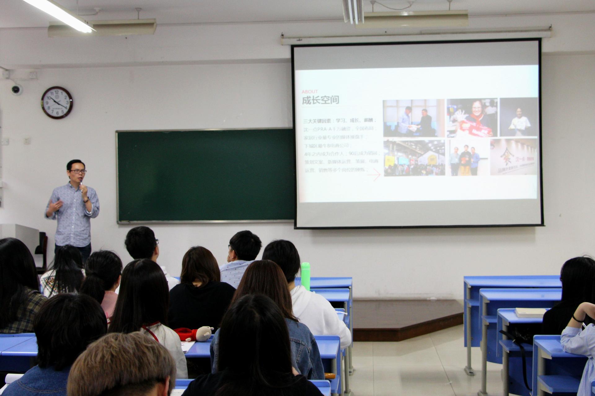 此次讲座由李漪老师主持,特别邀请到“广策传媒”弄房子家居事业部的总经理金光庭以及人事部经理陈松来进行宣讲,爱游戏