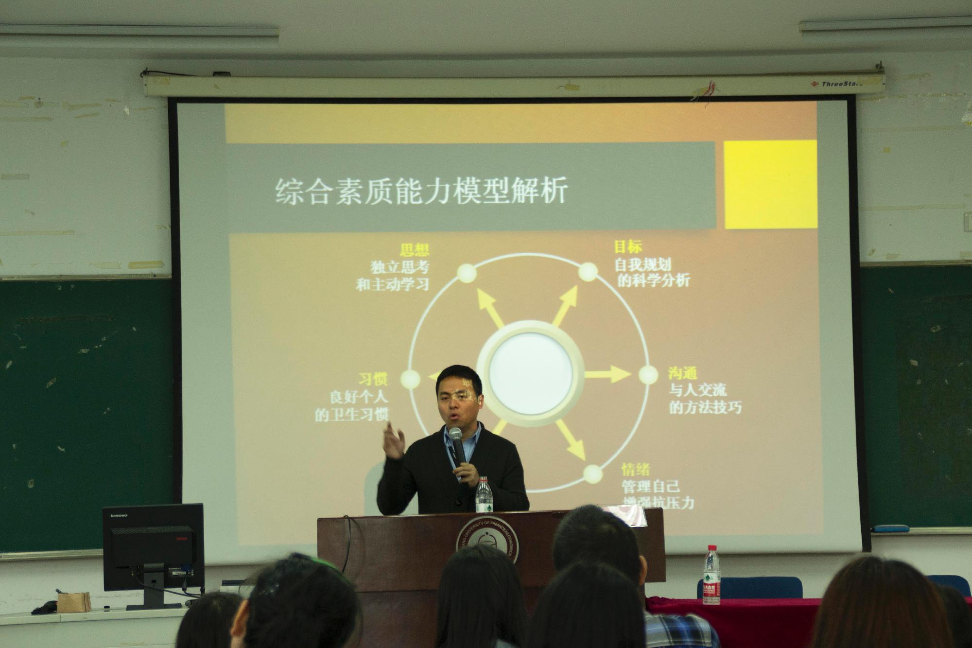 为了更好地提高学生综合素质,做好大学生职业生涯规划,适应社会和用人单位的需求,2014年4月22日下午2点,在爱游戏 楼112教室,爱游戏 特邀请了中青育成集团副总经理、四川省就业指导委员会指导老师王铭先生进行讲座。讲座主题为:“大学生核心竞争力的培养”。来自人文爱游戏 大一各班的同学们参加了本次讲座。