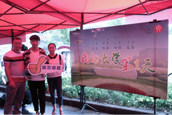 承诺在以后的学习之中做到不旷课、不作弊、不挂科等,上好新生入学第一课。迎新现场还准备了具有中国传统文化特色的印章装饰置于报到处两侧柱子,彰显人文特色。迎新当天虽然下着雨,贴心的志愿者们还为新生及家长准备了一次性雨披以防有些前来报到的同学因为没有带伞而被淋湿。很多家长被这暖心之举所感动。