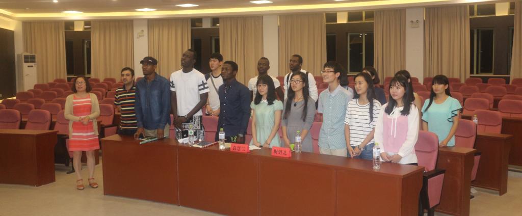 中国民歌、中国民间故事、中国成语贯穿了课堂的始终。国别的差异自然使得隔阂在所难免,但是中国文化的魅力所在就是让不同肤色、不同种族的人们相互靠近、相互依偎,手牵手、心连心。以中国传统文化为背景的成语故事,对留学生的理解能力是一个巨大的挑战,也令现场的留学生对中国文化产生了浓厚的兴趣,而一曲中国民歌《茉莉花》,则点燃了留学生学习中国传统民俗歌曲的热情。倪璧儿老师一遍遍认真的教唱,留学生一句句认真的学习,令中国传统文化散发出超凡的魅力。在袁慧兰老师的提议下,出席本次活动的人员围在一起歌唱《茉莉花》,一曲脍炙人心的民歌将本次活动推向高潮。