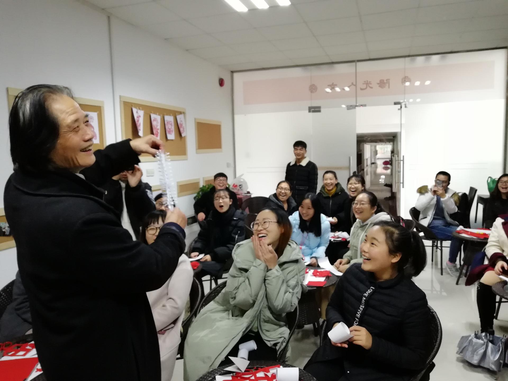 随后,宋会长向同学们教授了剪纸中“拉花”“双喜”“荷花”的制作方法,他提出剪纸是一门艺术,马虎不得,要用心去剪,才能剪出剪纸的灵魂。剪纸不同于其他艺术,它来源于农村,是我国劳动人民智慧的结晶,也是人们对生活的美好祝愿,现在科技虽然发达了,但是这门手艺不能丢。