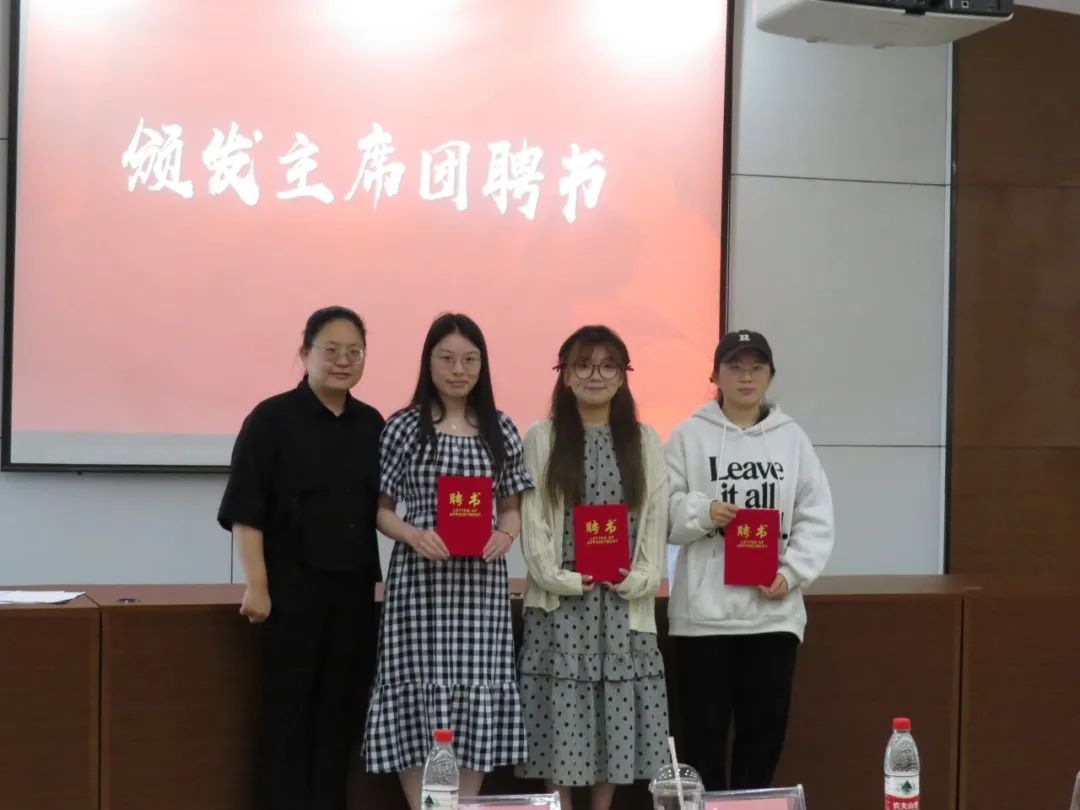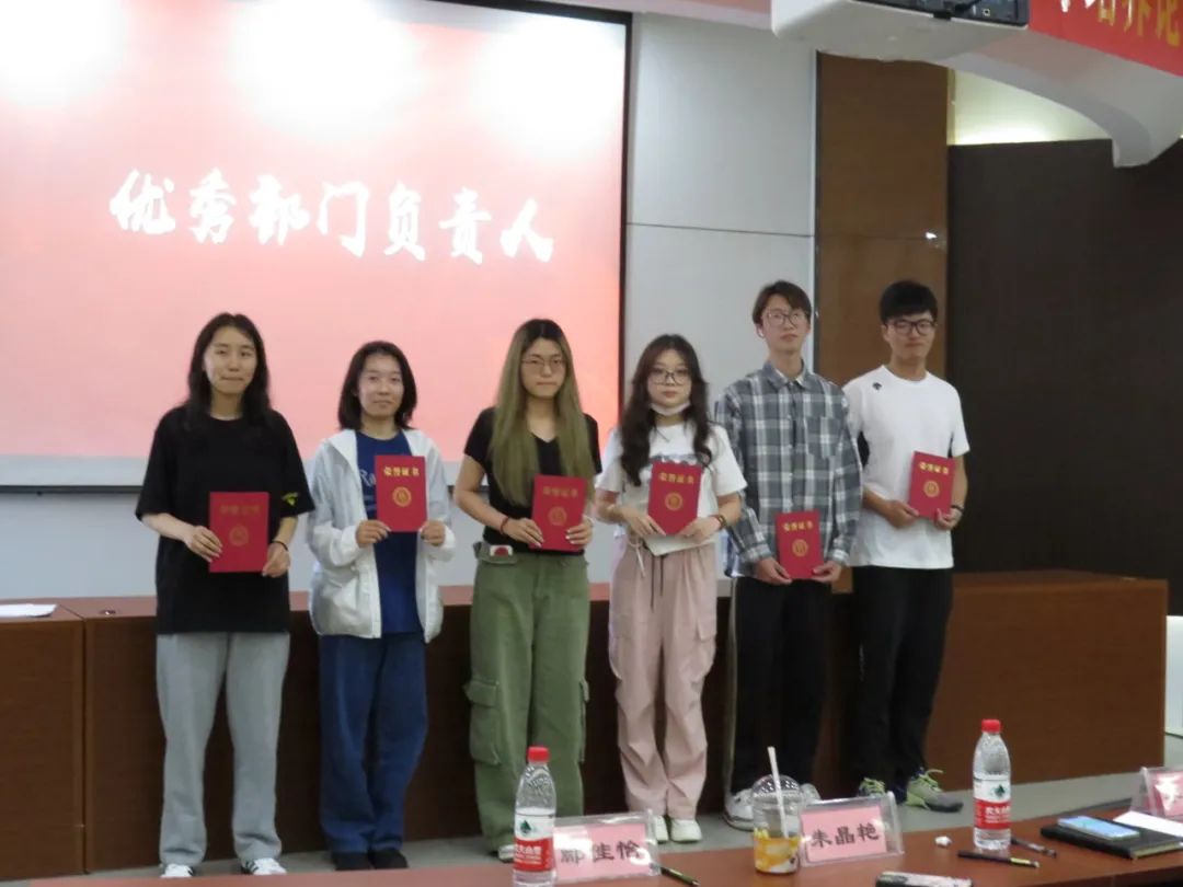 经过现场投票与评委打分,最终评选出“最受欢迎部门”、“优秀部门”、“优秀部门负责人”与“优秀干事”等奖项,对获奖者进行表彰,同时为主席团成员、各部门负责人颁发聘书并合影留念。