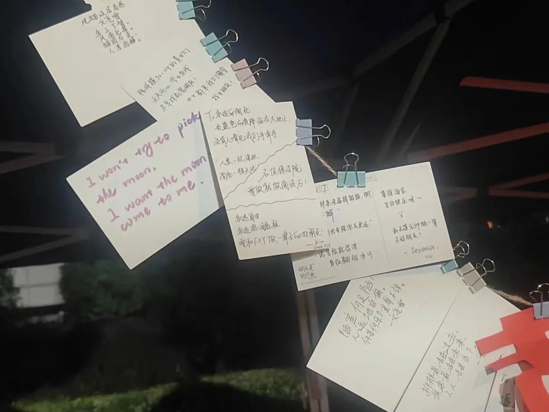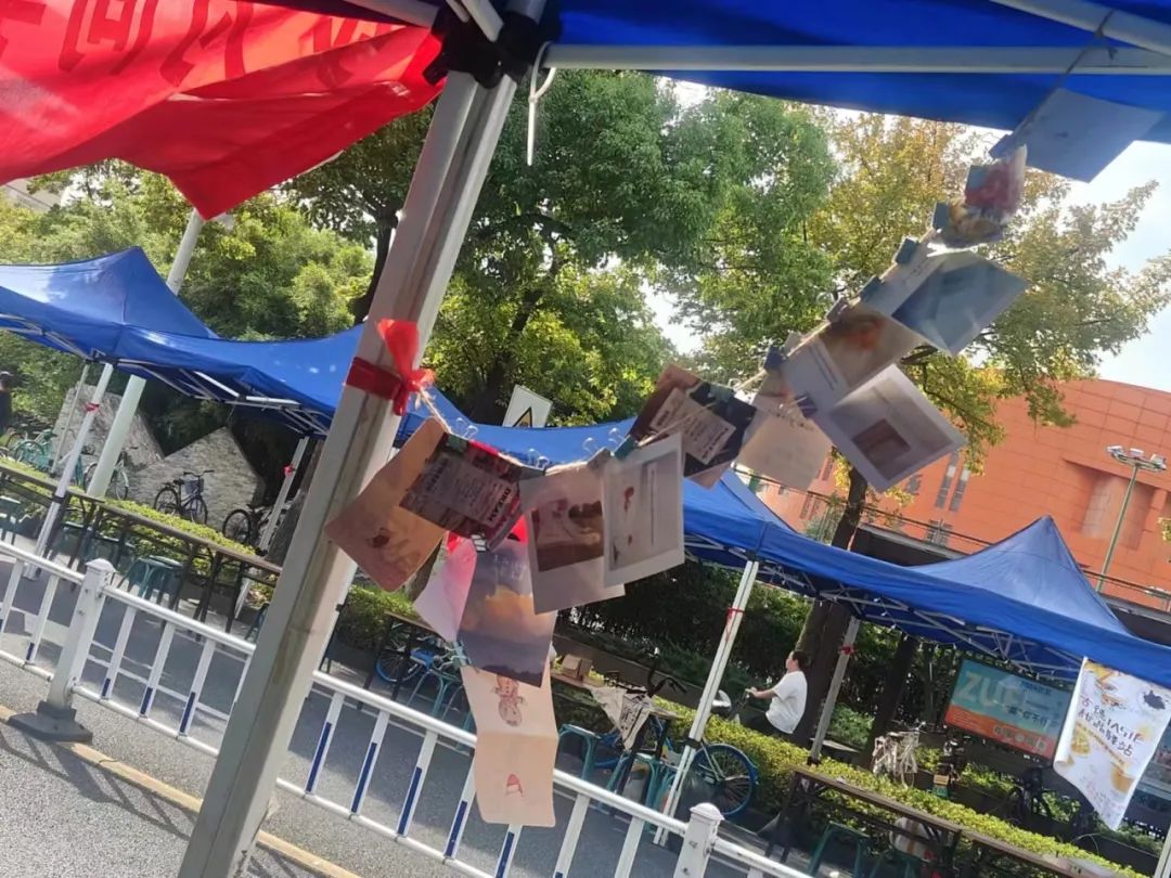 同学们有的将明信片带回去珍藏,有的留在了我们的摊位上。工作人员将它们展出,构成校园的独特景色,也吸引了越来越多的同学们来参与。