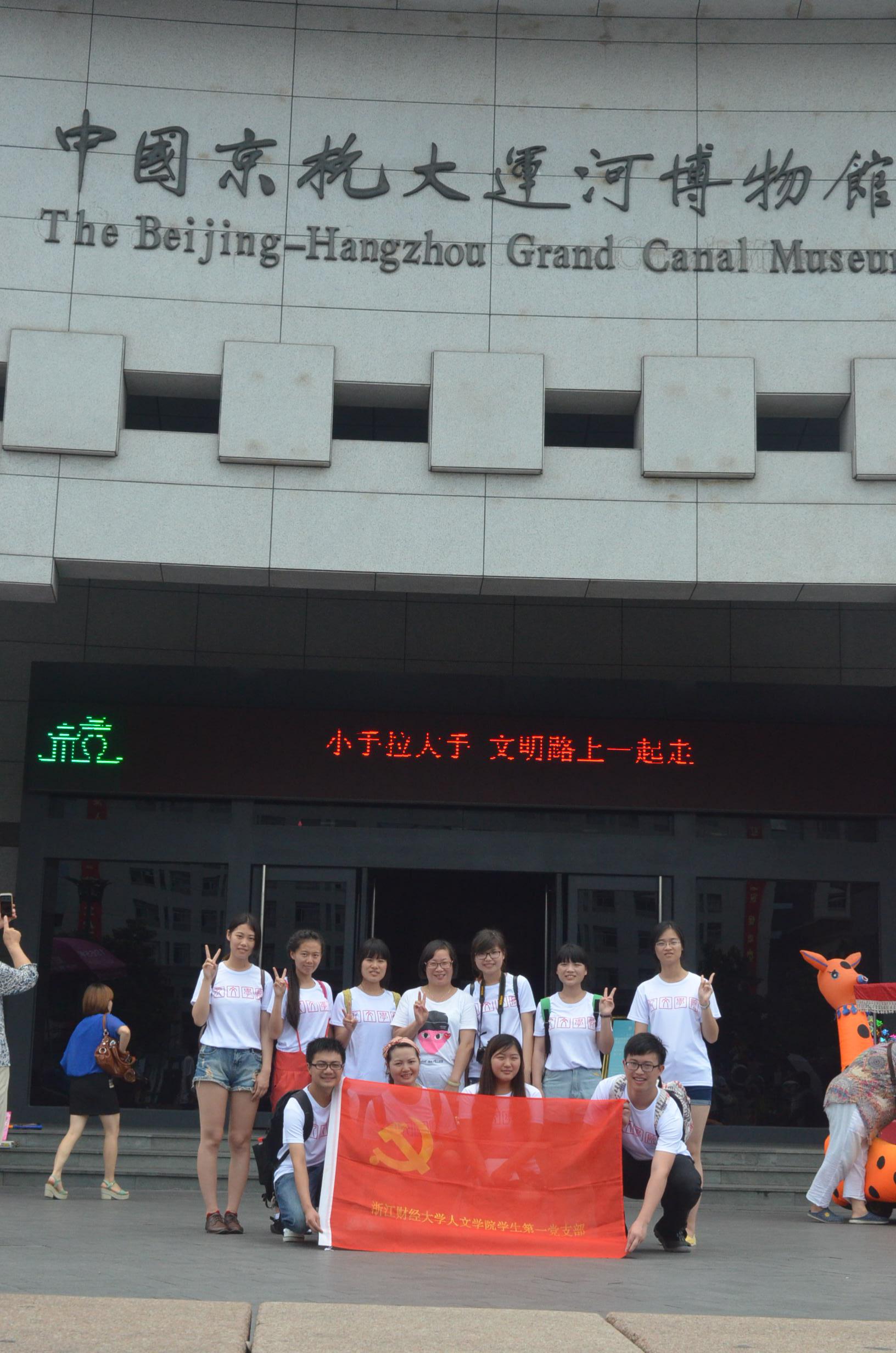 学生第一党支部暑期社会实践代表队赶赴杭州段大运河,在拱宸桥边开展了以“悠悠古情,运河循迹”为主题的暑期社会实践活动。希望通过对运河以及运河周边博物馆的考察,对当地居民的采访,深入了解大运河文化,吸收并推广运河文化。